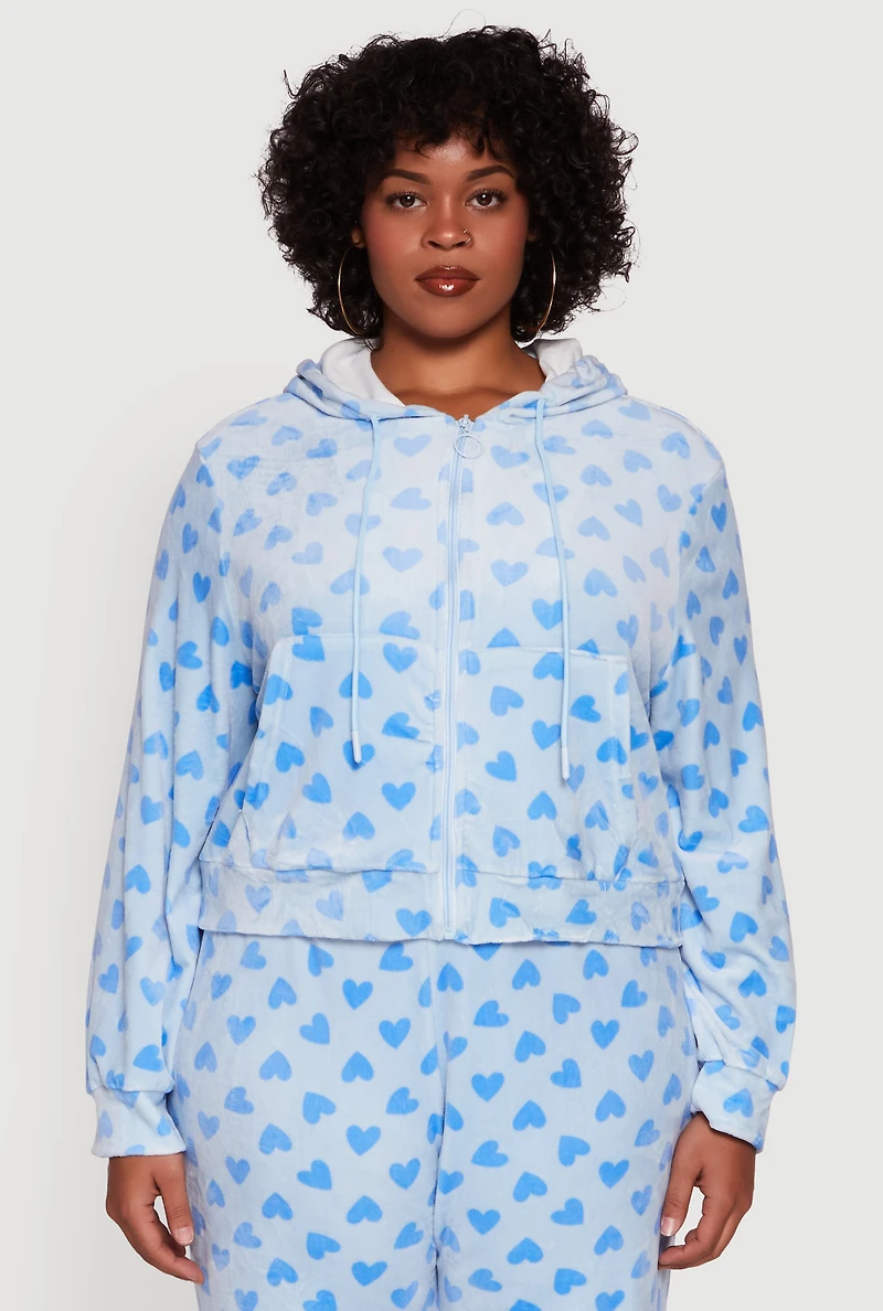 Plus Velour Heart Print Zip Front Hoodie in San Juan, PR