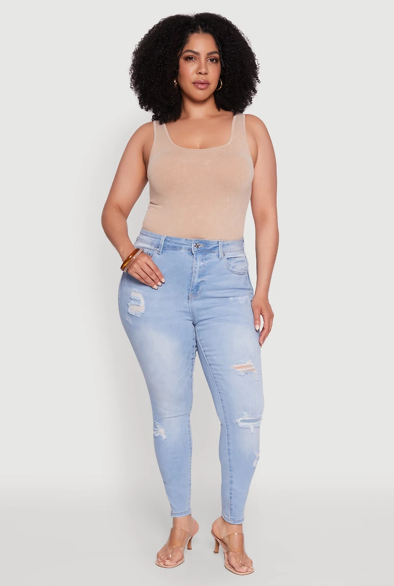 Plus WAX Distressed High Waisted Skinny Jeans