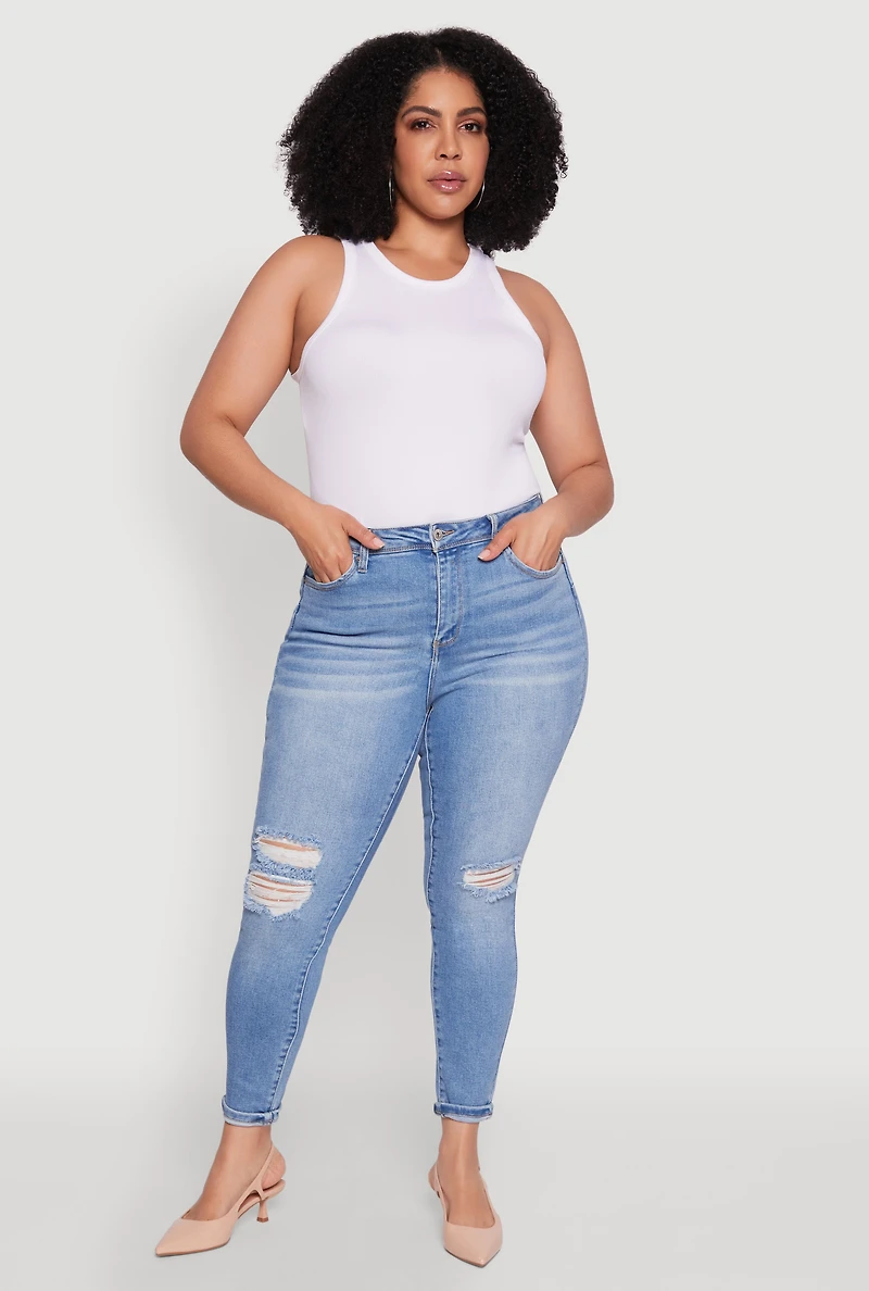 Plus WAX Trendy High Waisted Distressed Skinny Jeans