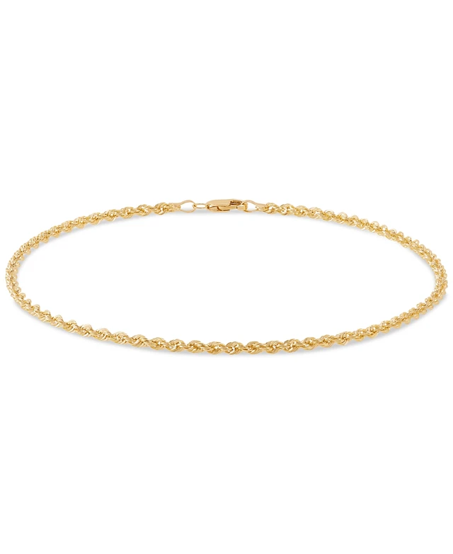 Lightweight Glitter Rope Link Ankle Bracelet in 10k Gold