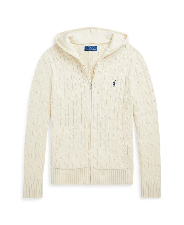 Polo Ralph Lauren Women's Cable-Knit Cotton Full-Zip Hoodie Sweater