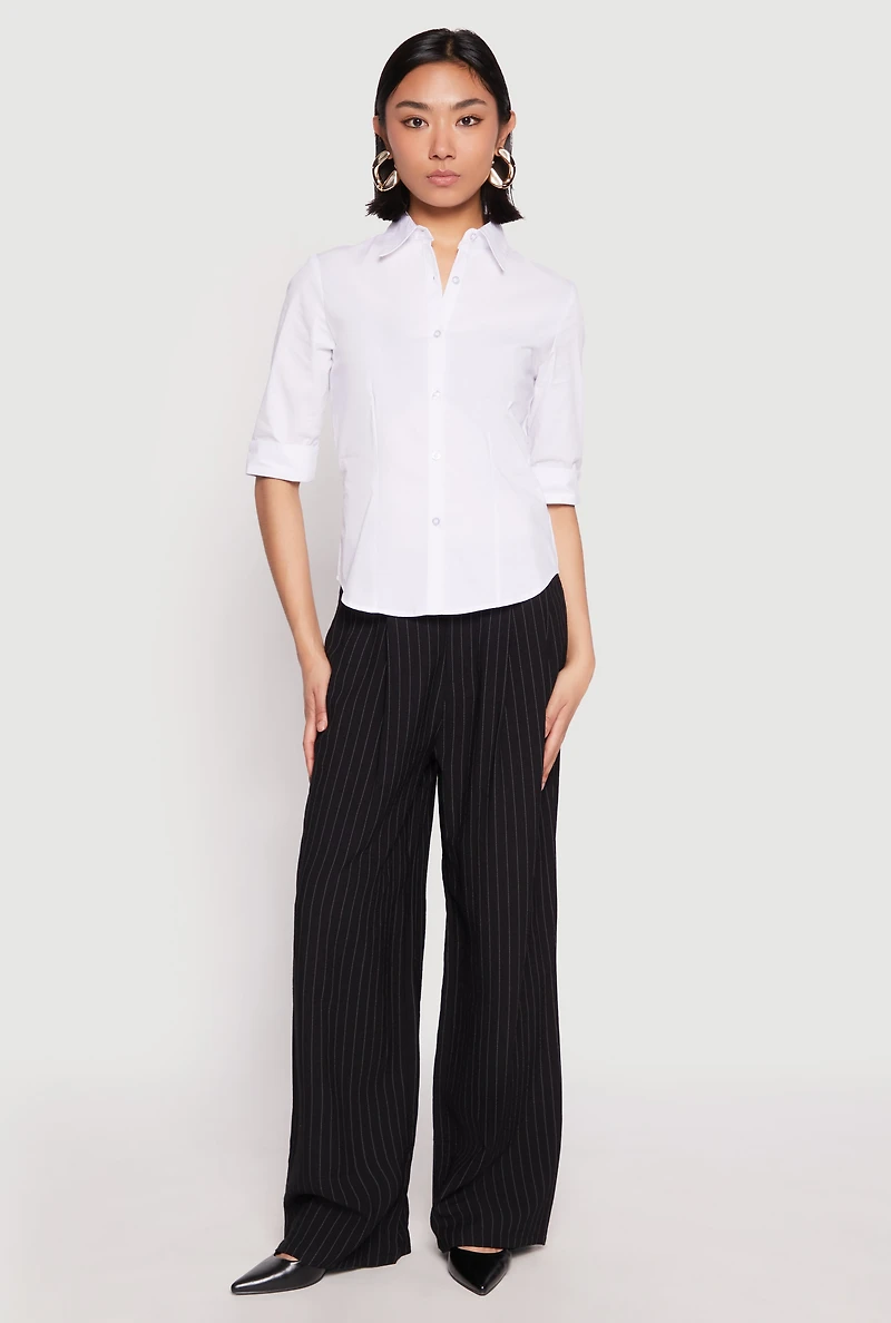 Poplin Quarter Sleeve Button Front Shirt