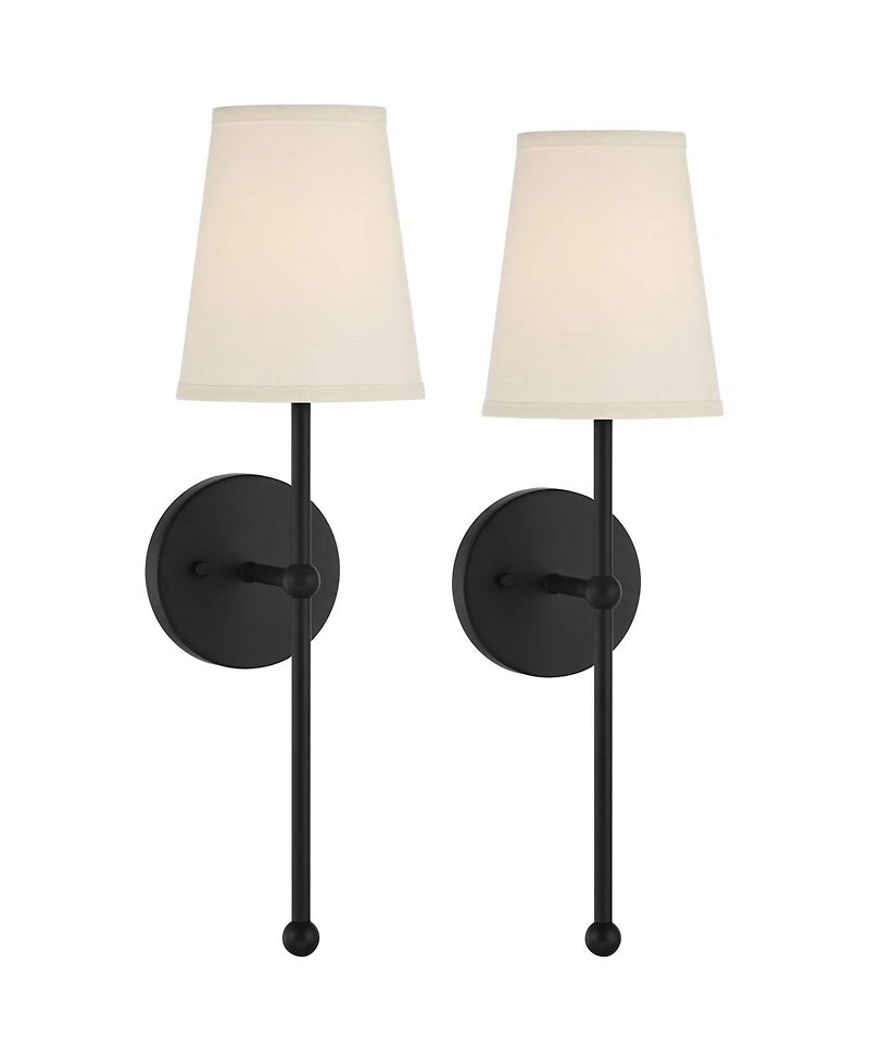 Possini Euro Design Elena Modern Wall Light Sconces Set of 2 Matte Metal Hardwire 6" Fixture Cream Linen Shade for Bedroom Living Room Hallway