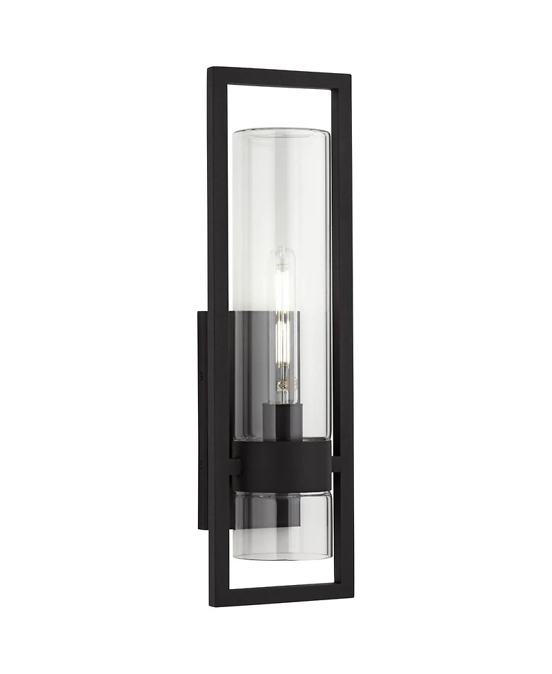 Add the appeal of slender modern design to your home's exterior with the Reed outdoor wall light from the Possini Euro Design brand. This rectangular design comes in a classy sand black finish, serving as an excellent enhancement to the single bright bulb nestled within the clear cylindrical glass shade. Rated for outdoor use, this is a wonderful lighting option for porches, patios, or framing doors and entrances to your home.