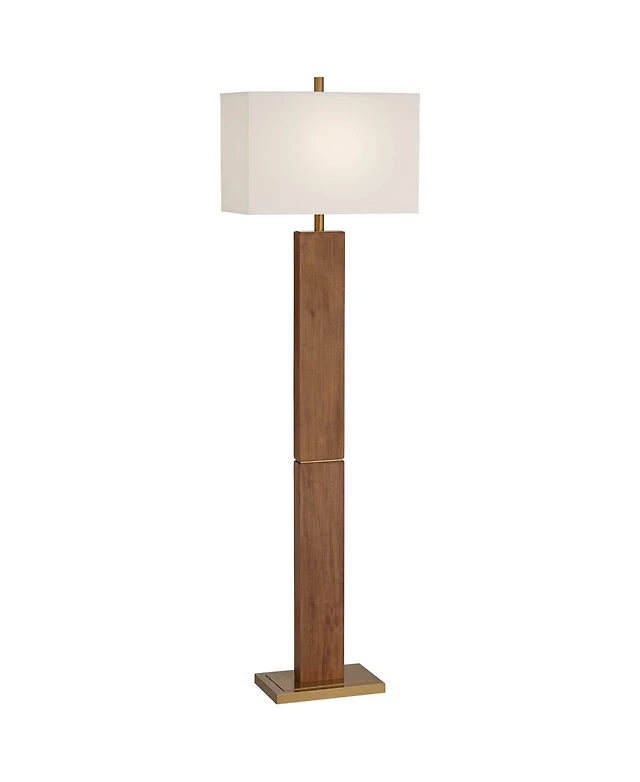 Possini Euro Design Walnut Grove Mid Century Modern 64" Tall Standing Floor Lamp Column with Dimmer Solid Wood Walnut Finish