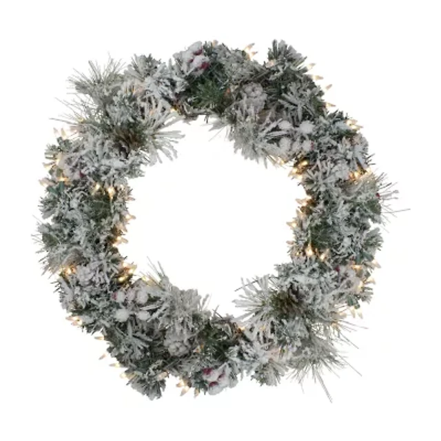 Pre-lit Heavily Flocked Berries and Pine Cones Artificial Christmas Wreath - 24-Inch Clear Lights