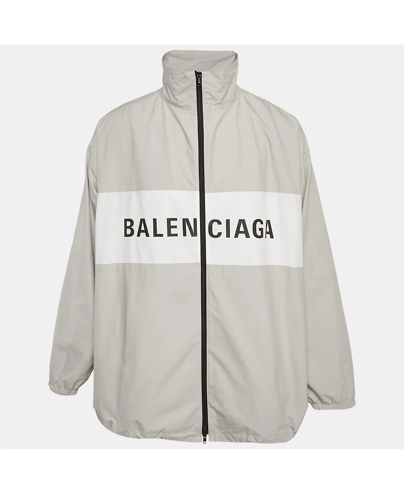 Pre-Owned Balenciaga Men's Unisex Grey Logo Print Oversized Jacket
