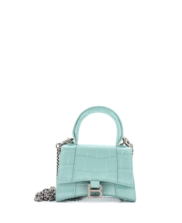 Pre-Owned Balenciaga Mini Hourglass Chain Top Handle Bag Embossed Leather