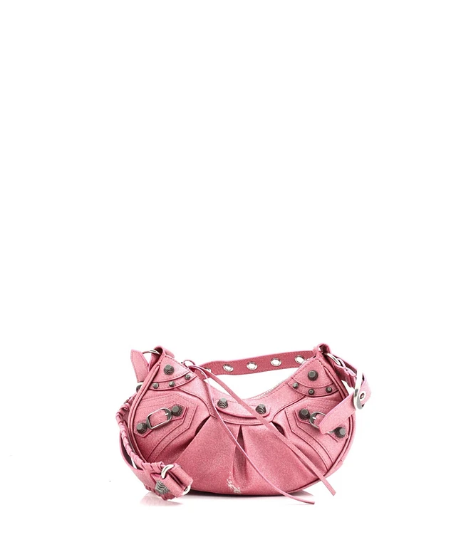 Pre-Owned Balenciaga Xs Le Cagole Giant Studs Shoulder Bag Glitter Leather