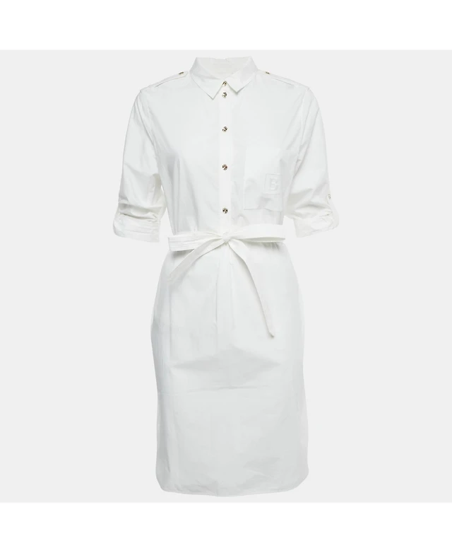 Pre-Owned Burberry Women's White Cotton Belted Mini Dress
