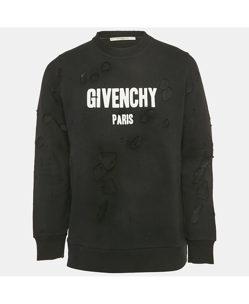 Pre-Owned Givenchy Men's Black Logo Printed Cotton Distressed Sweatshirt in San Juan, PR