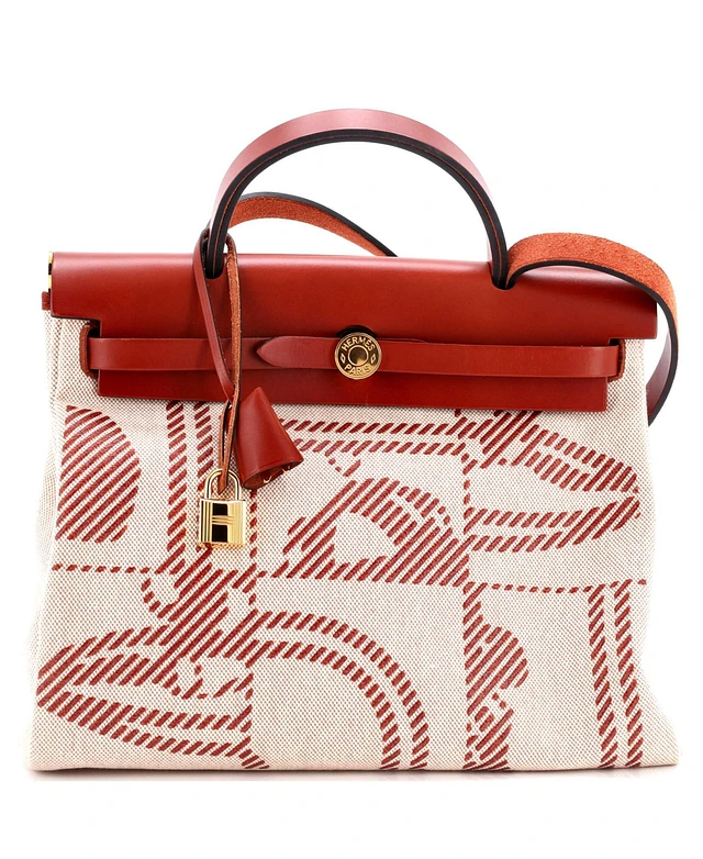 Pre-Owned HERMES 31 Herbag Zip Relief Brides de Gala Toile and Leather