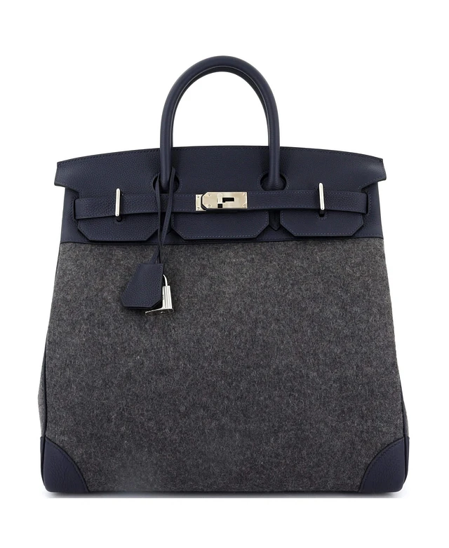 Pre-Owned Hermes Hac 40 Handbag Todoo Wool and Blue Togo with Palladium Hardware