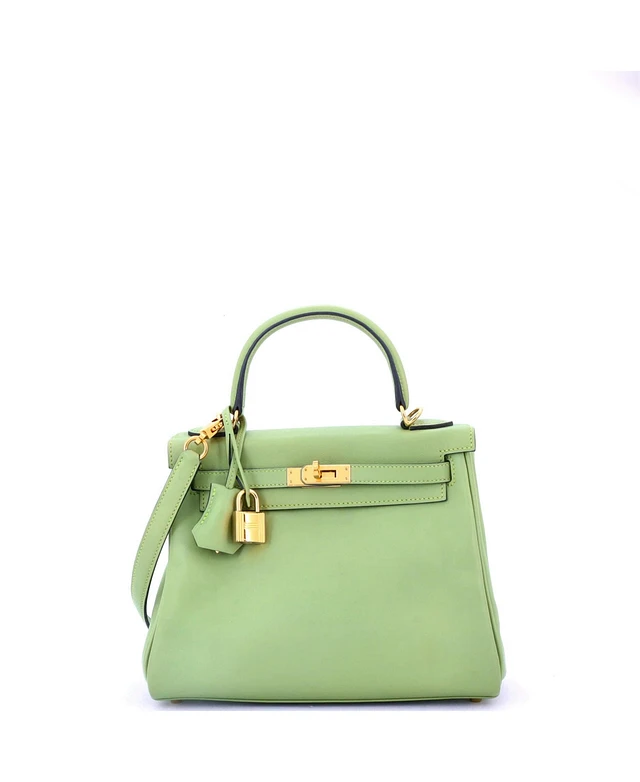 Pre-Owned Hermes Kelly 25 Handbag Green Swift with Palladium Hardware