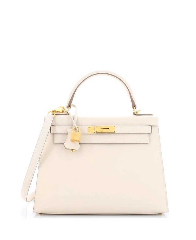 Pre-Owned Hermes Kelly Handbag Light Epsom with Palladium Hardware
