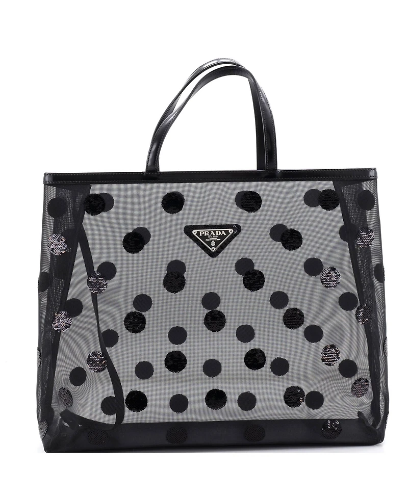 Pre-Owned Prada Large Logo Open Tote Polka Dot Sequined Mesh