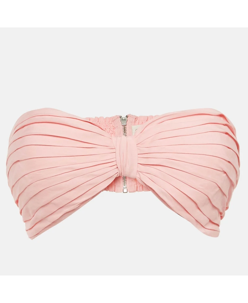 Feminine and flirty the Mayah bandeau top by Ronny Kobo stuns in pleated pink fabric with a sculpted silhouette. Perfect for summer styling or layering under a blazer it s a chic choice with standout appeal.