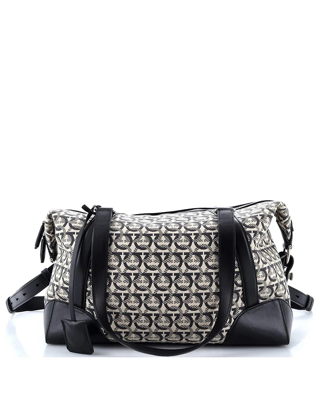Pre-Owned Salvatore Ferragamo Soft Duffle Bag Printed Canvas with Leather