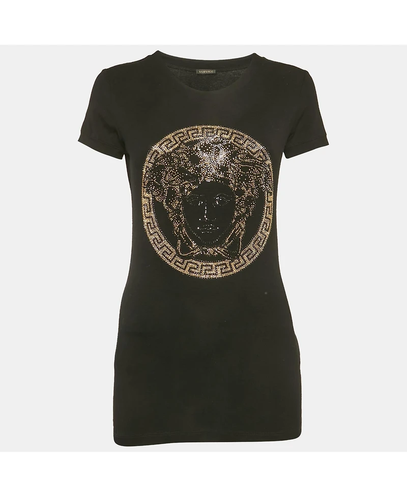 Pre-Owned Versace Women's Black Medusa Rhinestone Jersey T-Shirt