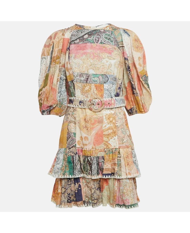 Pre-Owned Zimmermann Women's Multicolour Floral Print Linen Ruffle Hem Mini Dress in San Juan, PR