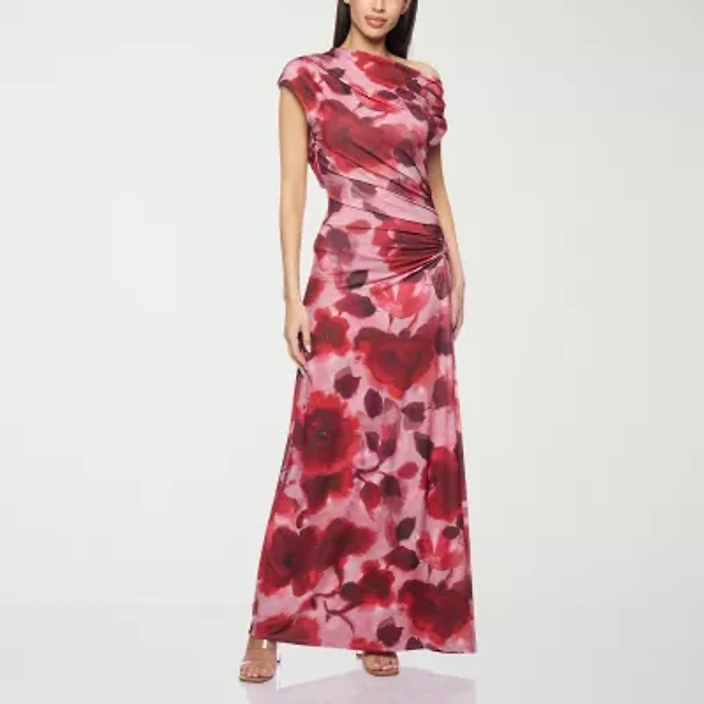 Premier Amour One Shoulder Womens Short Sleeve Floral Maxi Dress