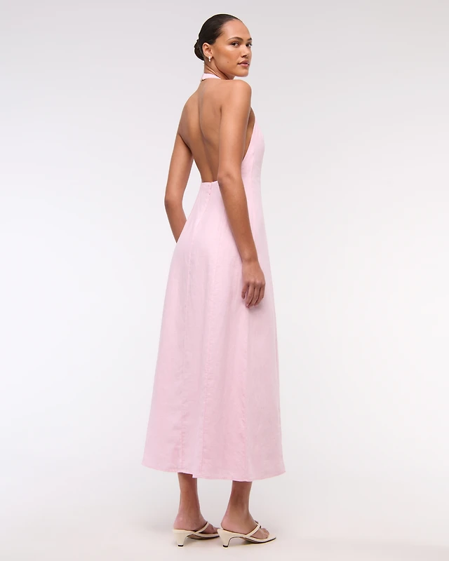 High-Neck Linen-Blend Maxi Dress