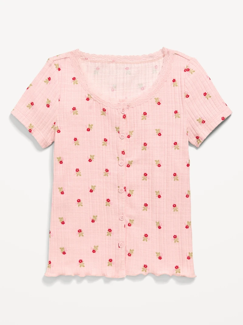 Printed Short-Sleeve Lace-Trim Button-Front Top for Girls in San Juan, PR