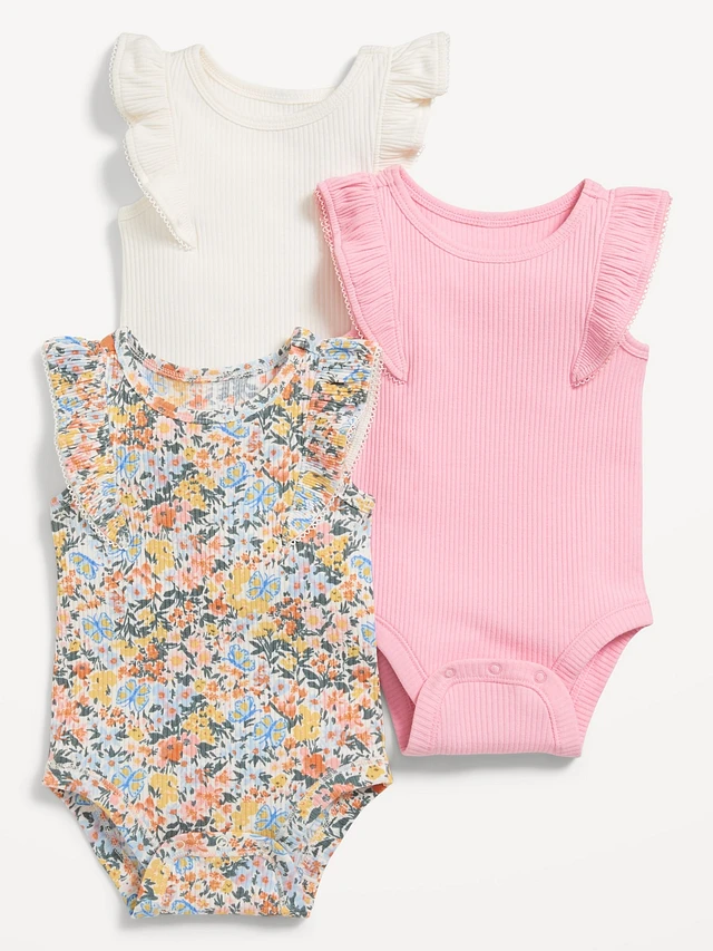 Printed Short-Sleeve Ruffle-Trim Bodysuit 3-Pack for Baby