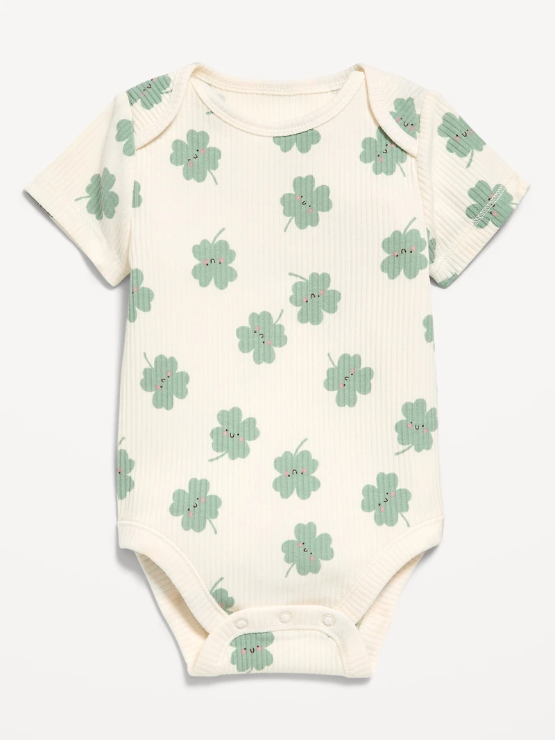 Printed Unisex Short-Sleeve Ribbed Bodysuit for Baby