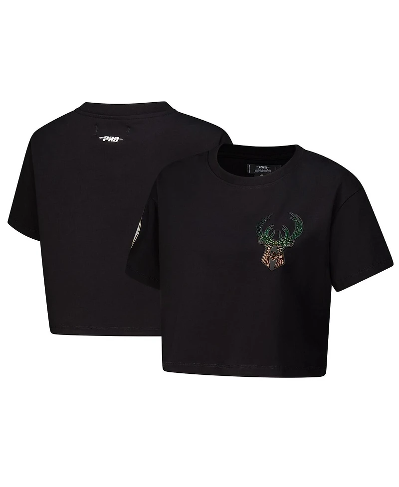 Pro Standard Women's Black Milwaukee Bucks Jewels Boxy Cropped T-ShirtPro Standard Women's Black Milwaukee Bucks Jewels Boxy Cropped T-ShirtPro Standard Women's Black Milwaukee Bucks Jewels Boxy Cropped T-Shirt