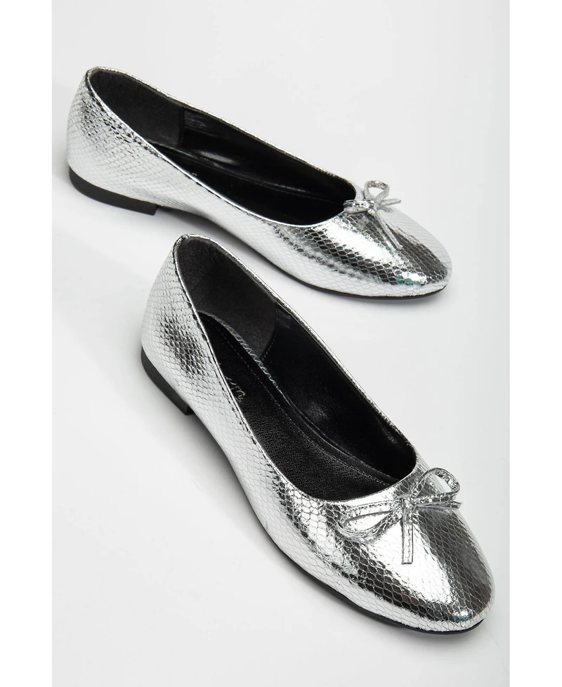 Crafted from smooth, textured faux leather and handmade in Turkey, the Amy Flats from Prologue Shoes offer understated style with everyday comfort. These timeless ballet flats feature a classic round-toe silhouette and a delicate bow detail, blending minimal design with a feminine finish. The low 0.4-inch (approximately 1 cm) heel offers subtle lift while keeping a naturally relaxed feel. The interior is lined with soft faux leather, and a cushioned insole adds extra support for all-day wear. Lightweight and flexible, the sole allows ease of movement whether you're walking, commuting, or traveling. Designed to run true to size, the Amy Flats offer a secure, comfortable fit. Whether paired with jeans, skirts, or relaxed tailoring, they bring a quiet sense of ease and polish to your everyday wardrobe.