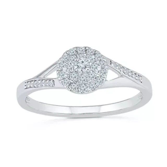 Promise My Love Womens 1/8 CT. T.W. Natural White Diamond Sterling Silver Round Halo Ring