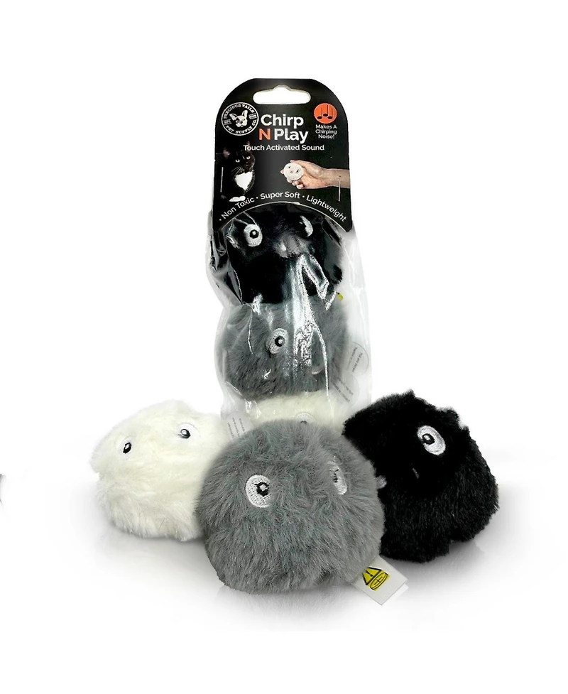 Introduce your feline friends to endless fun with the P.t. Supply Co. Chirp N Play Fluffy Kitty Balls. This interactive 3-pack cat toy set features fluffy balls that emit chirping sounds when played with, perfect for engaging your cat's hunting instincts. Ideal for those searching for 'interactive cat toys' or 'sound-emitting kitty balls,' these toys are designed to captivate and entertain your pet for hours. Each ball is crafted from soft, durable materials, ensuring safety and longevity, and aligning with searches for 'durable fluffy cat toys' and 'sound cat toys.' Whether your cat enjoys batting, chasing, or pouncing, the Chirp N Play Fluffy Kitty Balls provide a stimulating and enjoyable way to get active and reduce boredom.