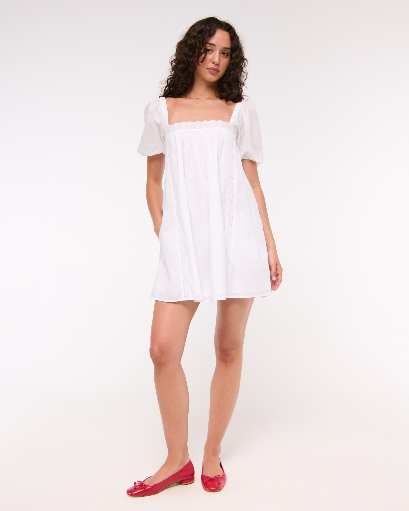 Puff Sleeve Lace-Trim Mini Dress