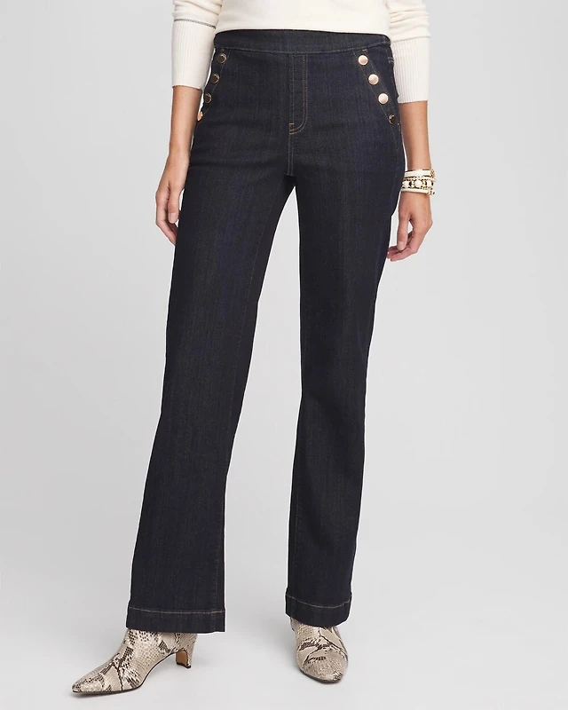 Pull-On Embellished Straight-Leg Cropped Jeans