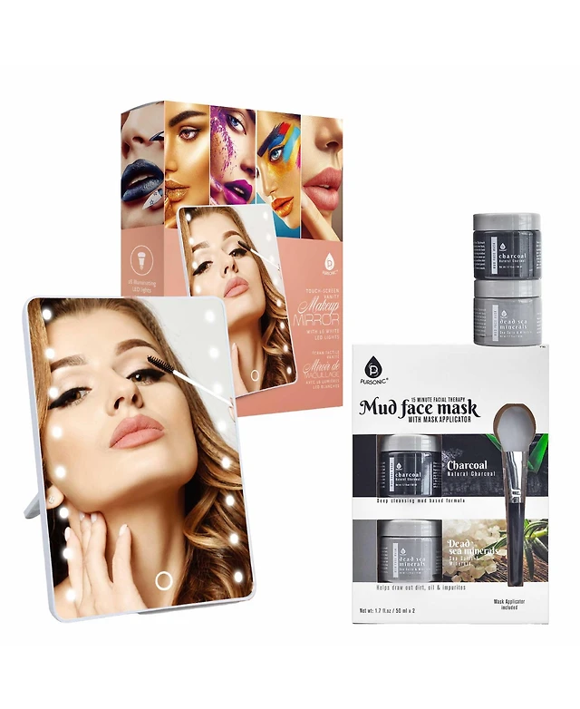 Pursonic Touchscreen Led Vanity Mirror and Luxurious Gel and Mud Face Mask Set