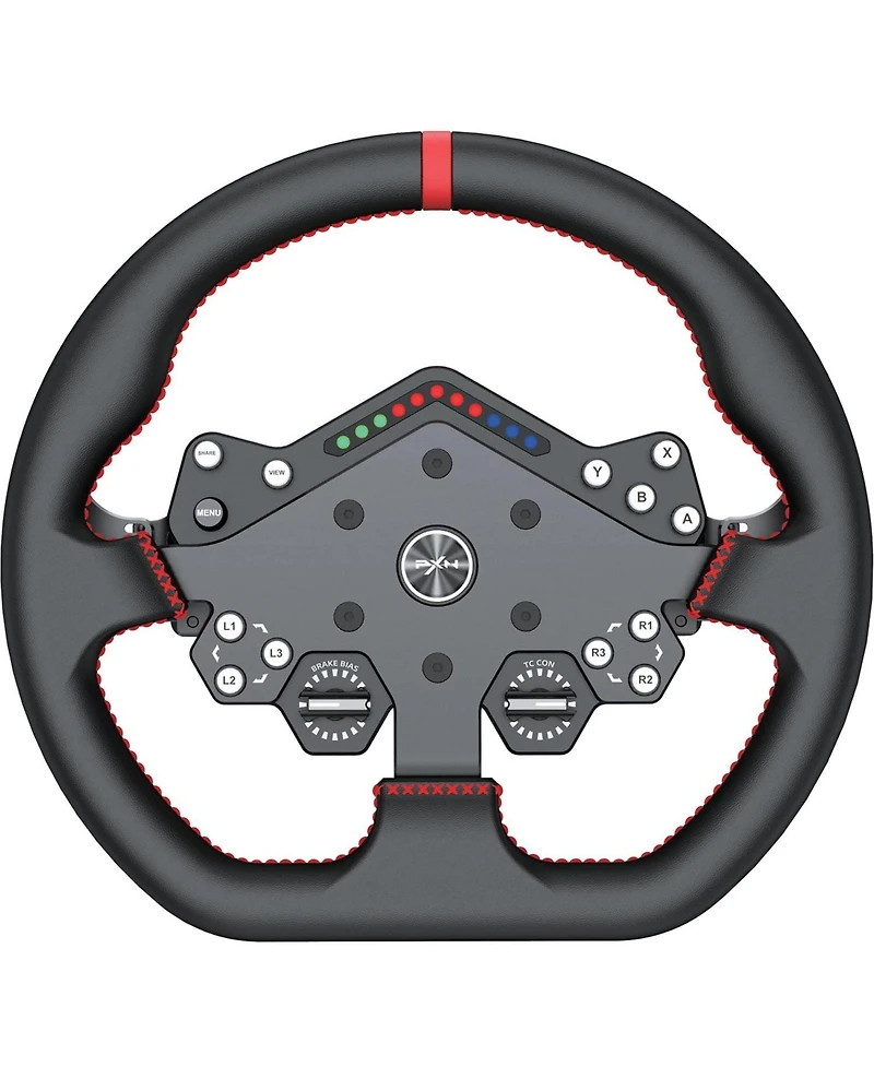The Pxn W Ds R2 Steering Wheel is a compact, race-style Usb steering wheel designed for precise control and immersive sim racing, featuring an ergonomic grip and responsive paddle shifters for compatible Pxn wheel bases.