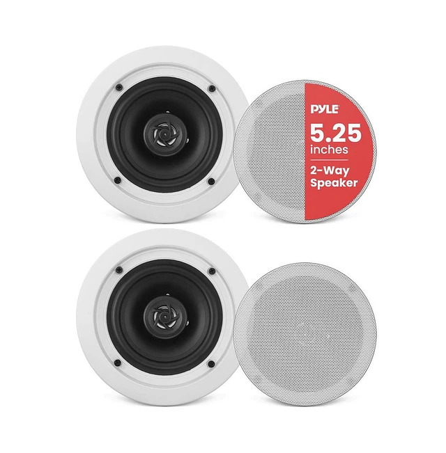 Pyle PDIC51RD 5.25" In-Wall/In-Ceiling 2-Way Stereo Speakers - Flush Mount, White, Pair