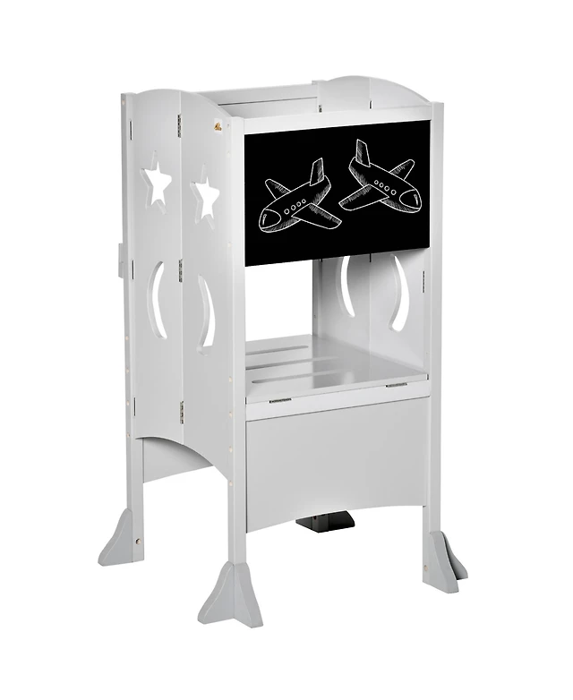 Qaba Kids Kitchen Foldable Step Stool w/ Chalkboard & Handrail 3-6 Yrs Old