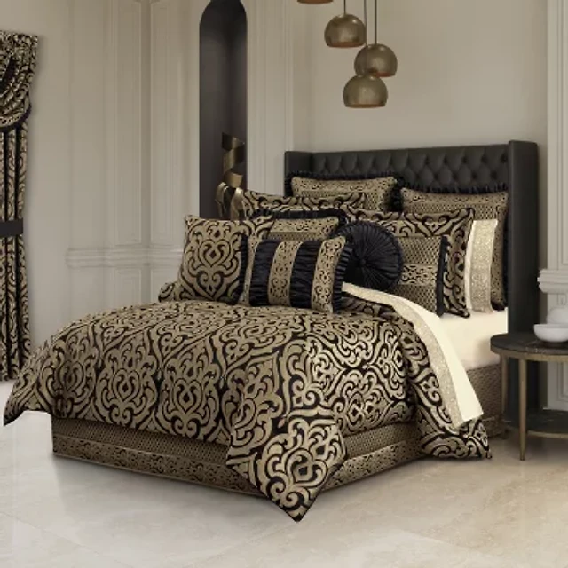 Queen Street Blythe Black & Gold 4-pc. Midweight Embellished Comforter Set