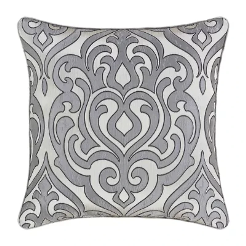 The Blythe 20" decorative throw pillow is the perfect decorating accessory not only to complete the bedding ensemble but as an elegant accent in other areas of the home. Featuring a grand-scale woven damask in pewter charcoal tones. The pillow reverses to a lovely tear-drop pattern to allow for further versatility when decorating your space.