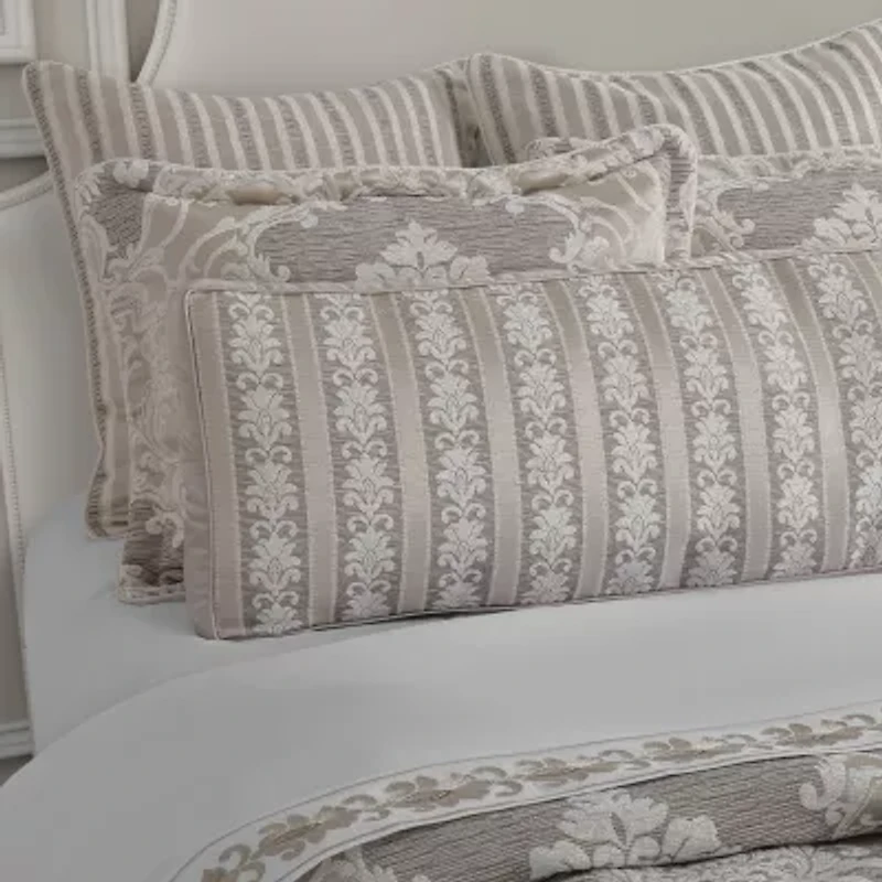 Effortless elegance and timeless colors inspire the Quincy Bolster Throw Pillow. It features a woven jacquard stripe design in soft almond and ivory tones. This luxurious gusseted accent pillow is recommended to add as the finishing layered touch to the Quincy bedding set.