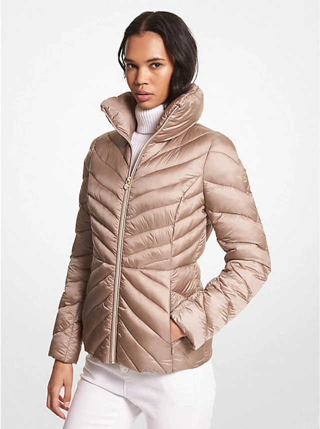 Chevron Logo Print Quilted Nylon Reversible Jacket