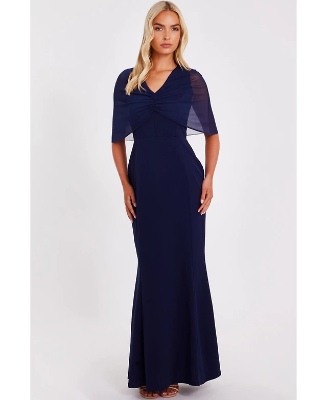 Quiz Women's Scuba Crepe Maxi Dress with Mesh Cape