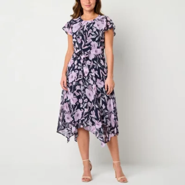 R & K Originals Womens Short Sleeve Floral Midi Fit + Flare Dress