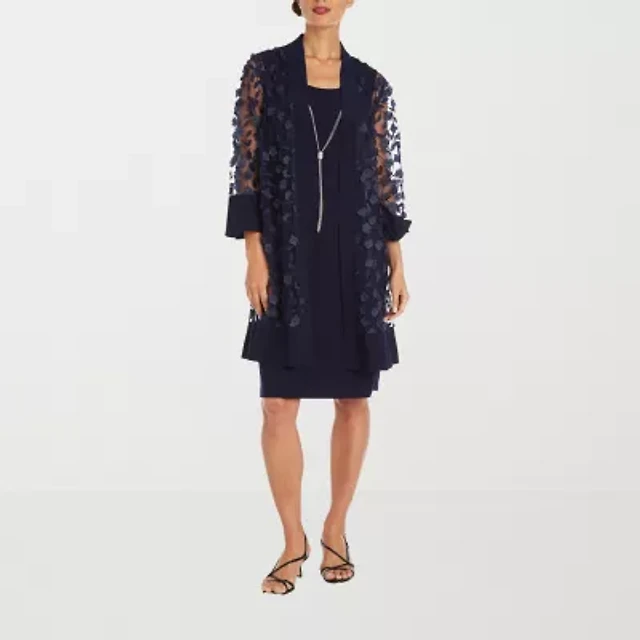 R & M Richards Womens Jacket Dress With Removable Necklace Petite