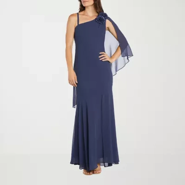 R & M Richards Cold Shoulder Womens Short Sleeve Evening Gown