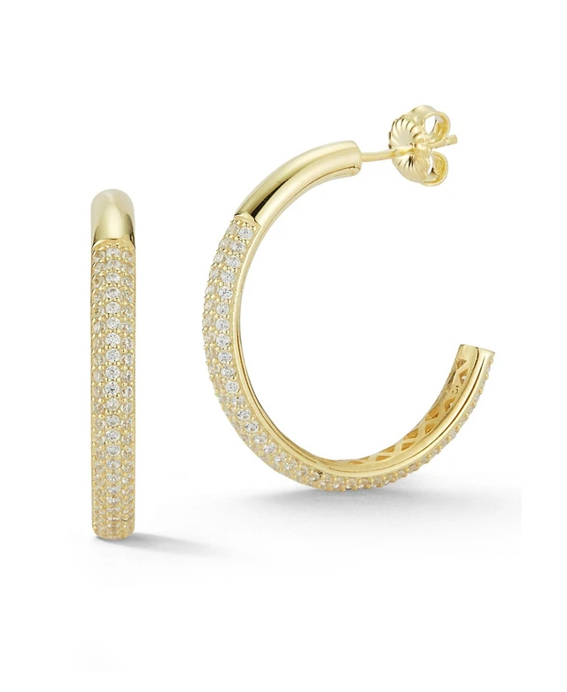 Rachel Zoe 14K Gold Plated Sterling Silver Half Pave Hoop Earrings