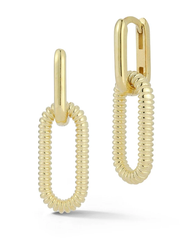 Rachel Zoe Sterling Silver Ribbed Link Drop Earrings
