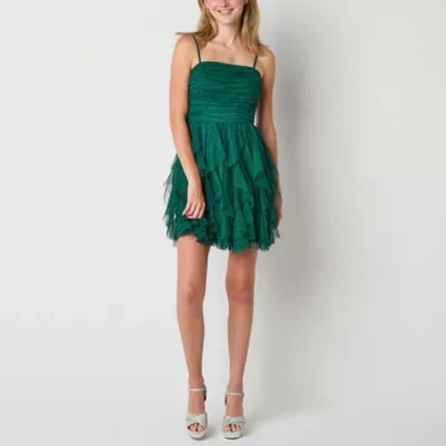 Emerald Sundae Juniors' Ruched Tiered Fit & Flare Dress